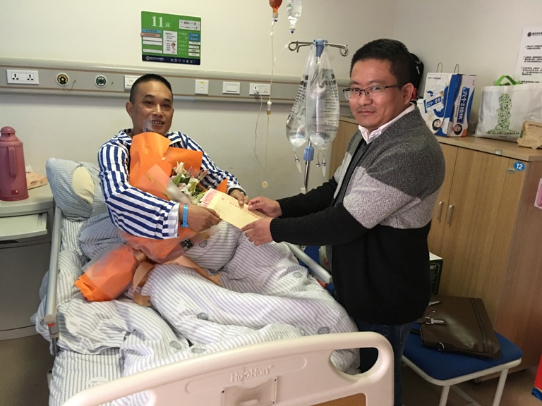 2017年10月19日下午,四川省強波電力工程有限公司派代表到南充中心醫院探望公司工程部員工潘國禮,并為他帶去了慰問品和公司全體同事的關心。